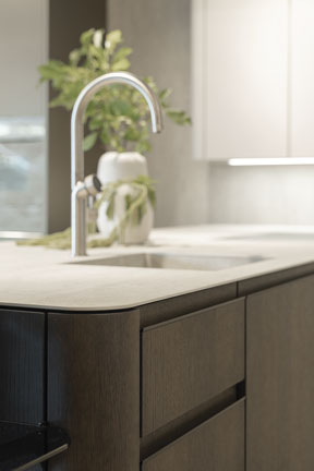 One of the new natural wood veneers, Graphite Oak elevates the craftsmanship and natural beauty of a SieMatic kitchen. The natural wood grain reflected on rounded side panels, as shown on the award-winning SG6 kitchen design above, reflects the company’s signature attention to detail and top-quality design. Timelessly elegant, yet perfectly suited for today’s modern kitchen designs, Graphite Oak is a warm finish that seamlessly coordinates with the rest of the home.