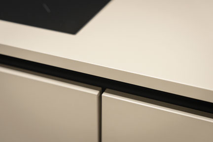 Designed to appeal to the senses, SimiLaque Plus is a next-generation High Pressure Laminate (HPL) that’s both visually and texturally intriguing. Its super-matt finish interacts beautifully with wood, stone and metallic accents. Meanwhile its soft-as-velvet surface invites touch while resisting fingerprints. Engineered for real-world performance, it features an advanced oleophobic coating that repels oil-based substances and antimicrobial protection to promote a more hygienic kitchen environment. Durable enough to use as a worktop, SimiLaque Plus blends beauty and practicality into one amazing surface. It’s available in 10 colors, including four shades that are brand new to SieMatic: Elephant, Silk, Mocha, and Shadow.